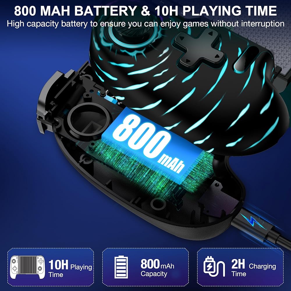 【WIRELESS IPHONE GAME CONTROLLER WITH HALL JOYSTICK】 The mobile gaming controller have 10 different lighting modes, you can switch LED colors or modes to build your own exclusive gaming ambiance! The Hall effect joystick provide ultra precise control, No drift, No deadzone! It helps you gain dominant position of games faster and the performance and game experience has been improved qualitatively. Dual motor vibration for a more immersive gaming experience