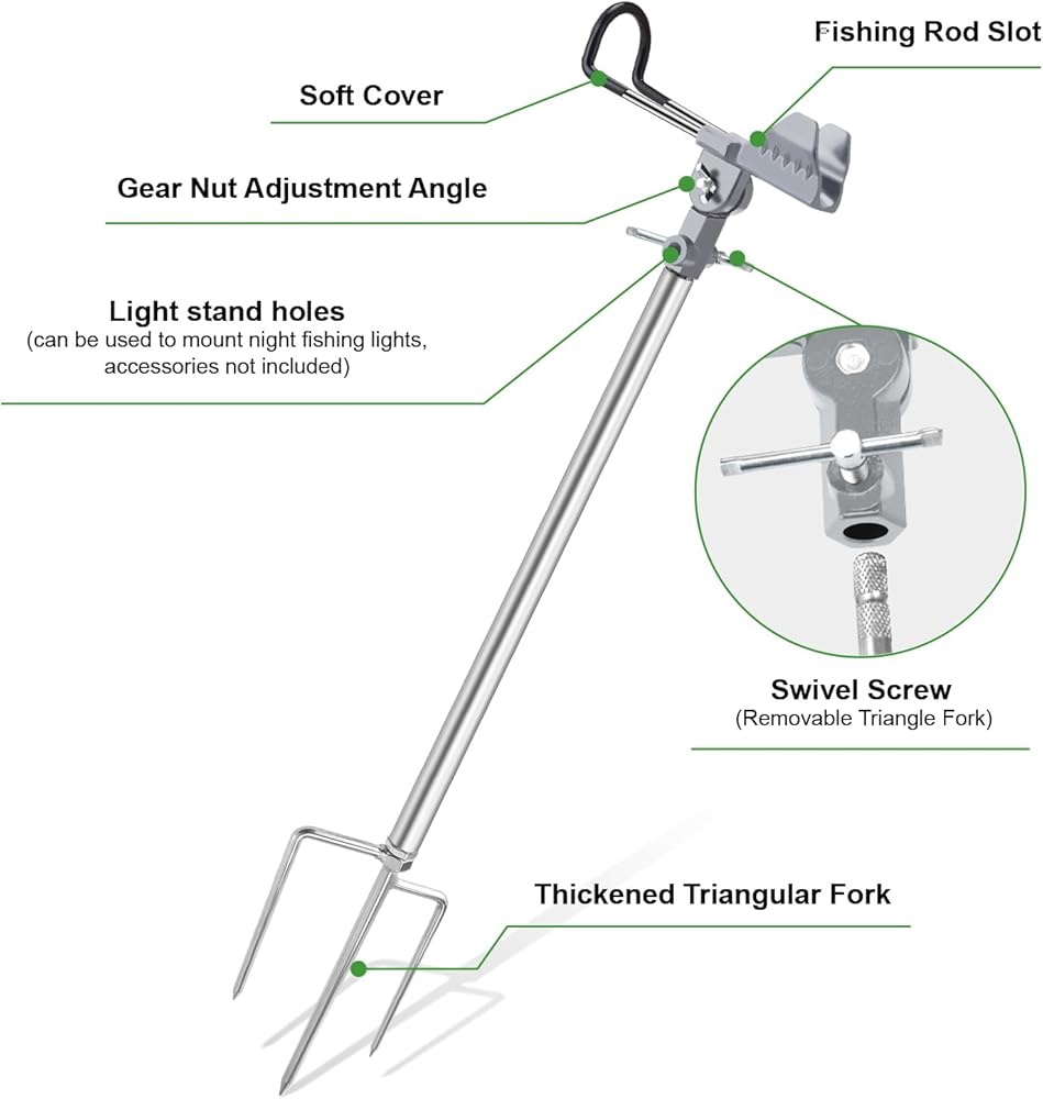 Fishing Rod Holders, 360 Degree Adjustable Fishing Pole Holders for Ground, Multifunctional Stainless Steel Beach Fishing Rod Holder Fishing Gifts for Men