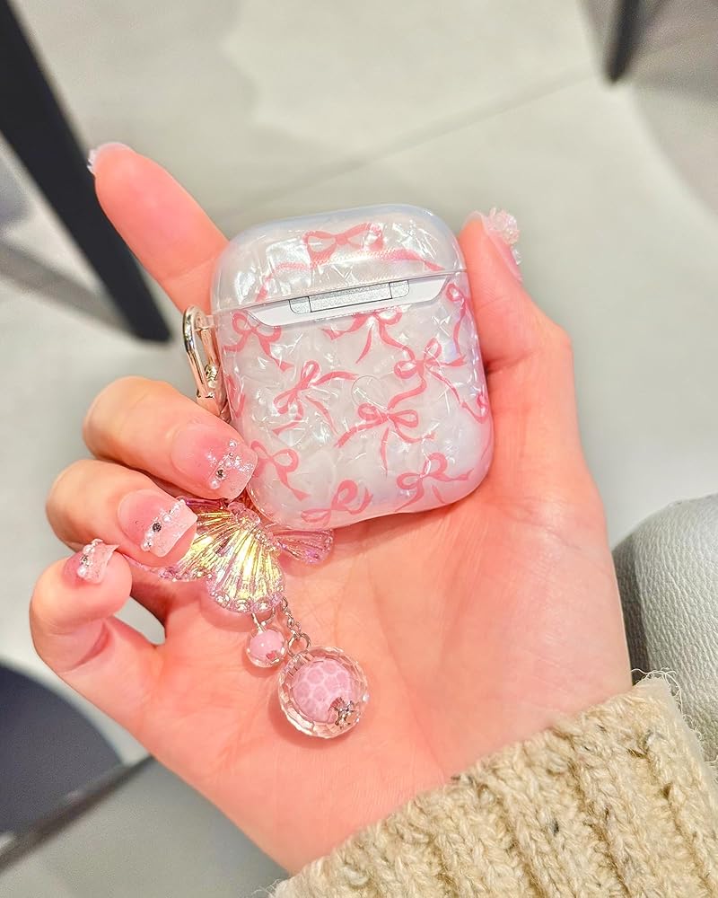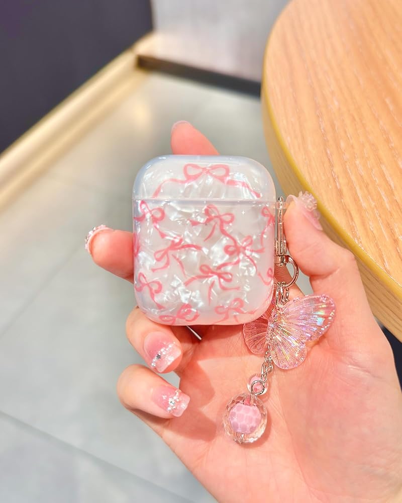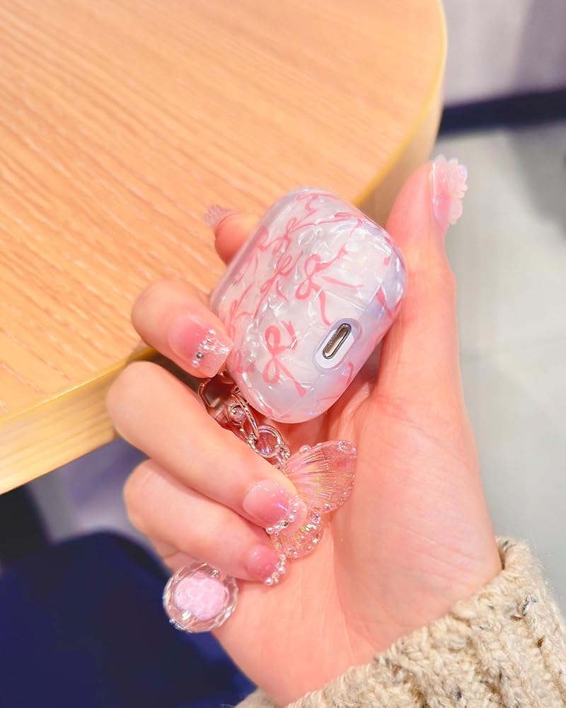 White shell cover with bowknot patterns, cute butterfly charms make your AirPod pro looks more stylish.