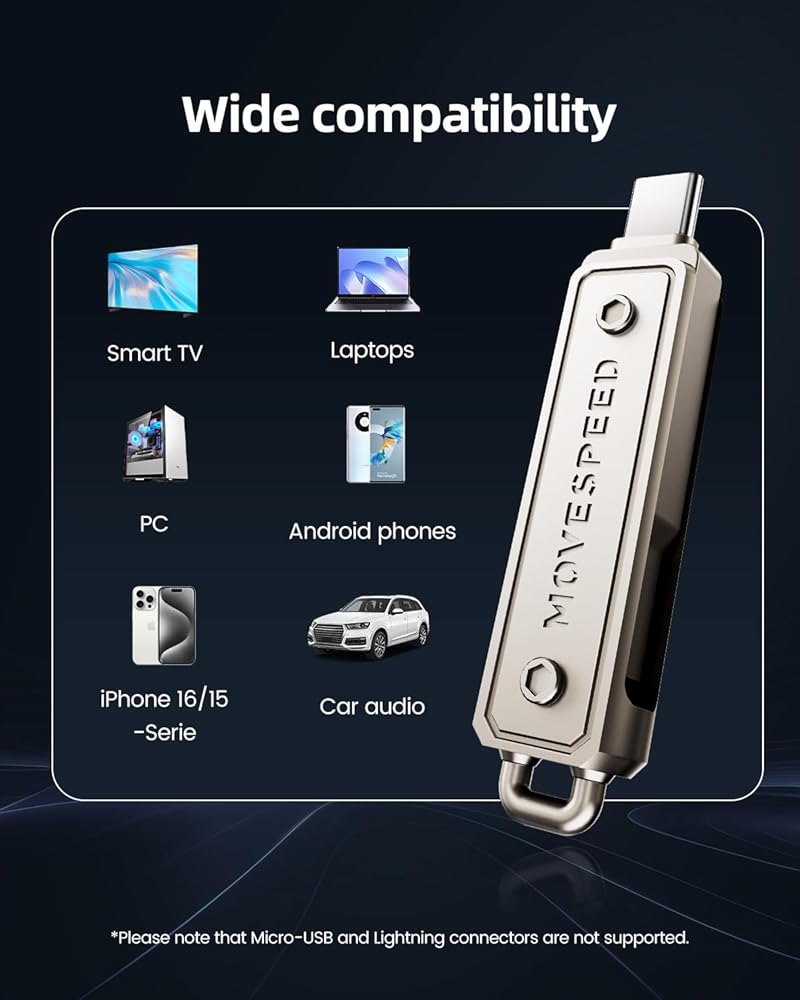 Durable, Heat-Resistant Design: USB C drive is made of high-quality zinc alloy shell, which is shock-resistant and durable. MOVESPEED usb stick has excellent heat dissipation and stable performance compared with plastic drives.