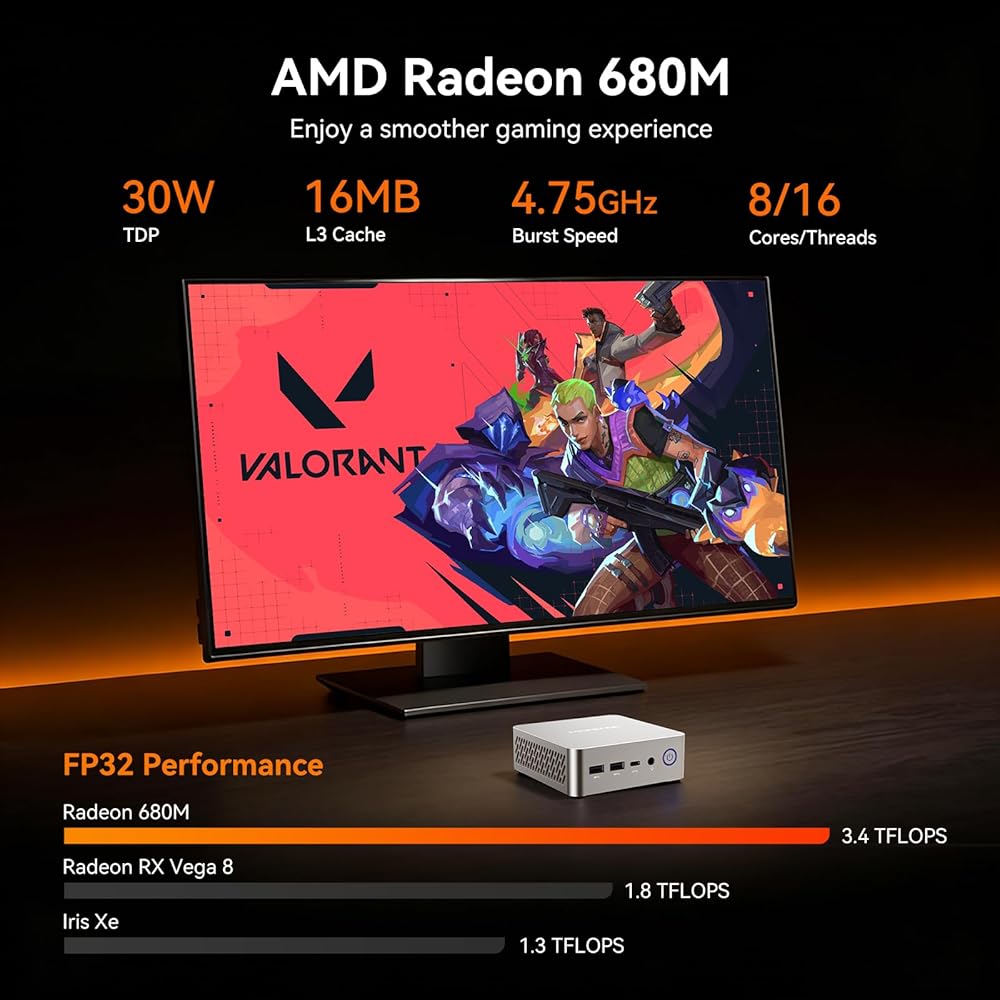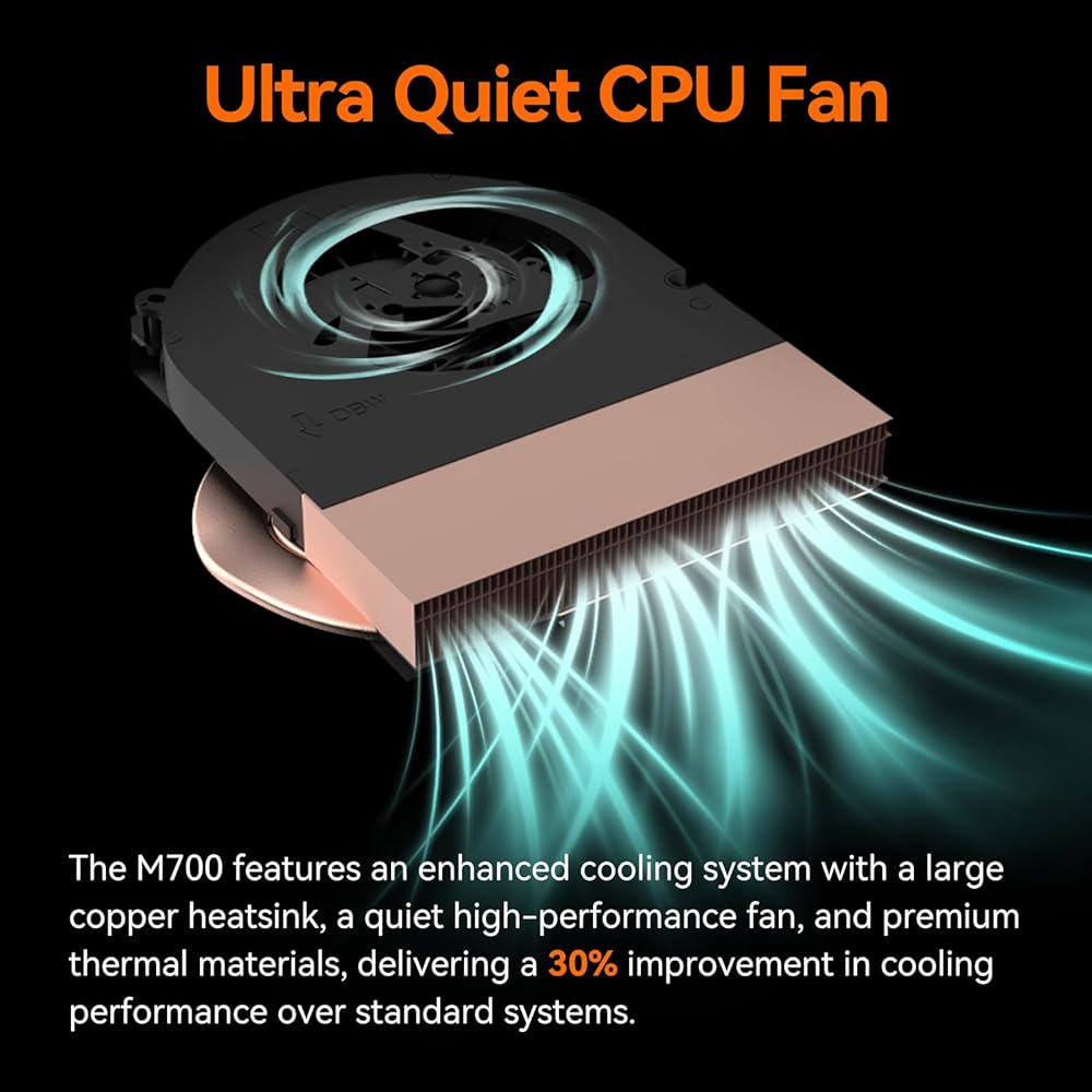 【WiFi6 BT5.2 and Silent Fan】Utilizes the latest 802.11ax WiFi 6 dual-band network (2.4G+5G) for transmission speeds up to 600Mbps. Provides a smoother experience for video streaming and file downloading. The mini pc quipped with a smart silent fan, it provides a quiet operating environment.