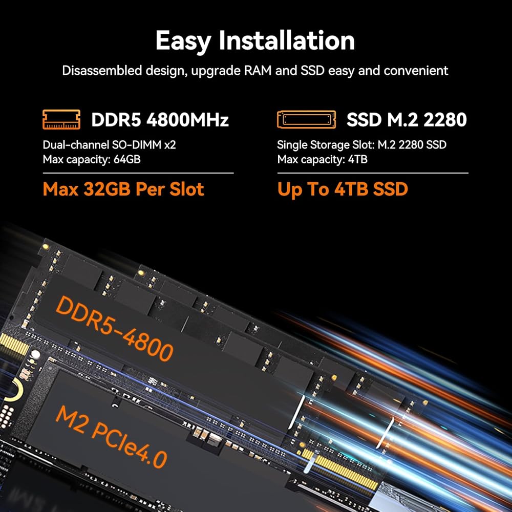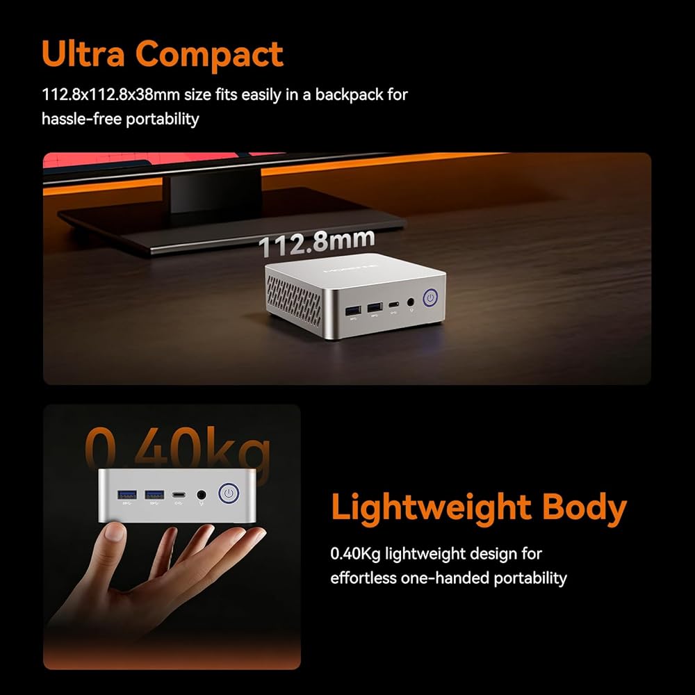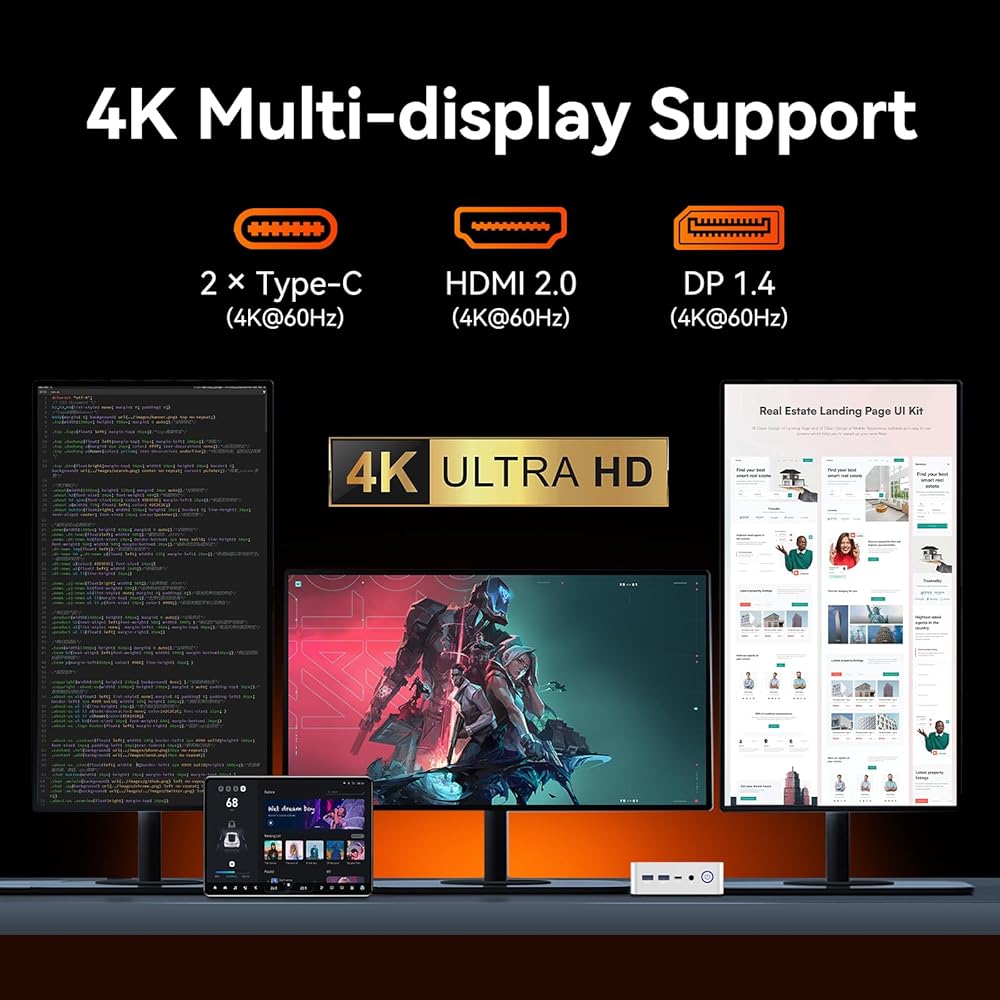 【Dual 4K Output for Simplified Multitasking】This mini desktop pc is equipped with dual HDMI2.0 4K@60Hz ports, which allows you to connect two monitors at the same time to realize the multi-screen display function. Whether you are analyzing data, editing documents, or multitasking, this mini-computer can dramatically increase your work efficiency and create a more productive environment.