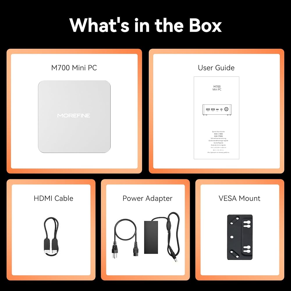 【16GB DDR4 and 512GB SSD, Support Expansion】MOREFINE M9 N150 mini desktop computer has prebuilt 16GB DDR4 3200MHz RAM(single channel, up to 32G) and 512GB M.2 PCIe3.0 SSD. The SSD slots are one M.2 2280 NVMe PCIe3.0 and one 2242 SATA3. Supporting up to 4TB of storage expansion, the ample storage space makes the computer run smoother.