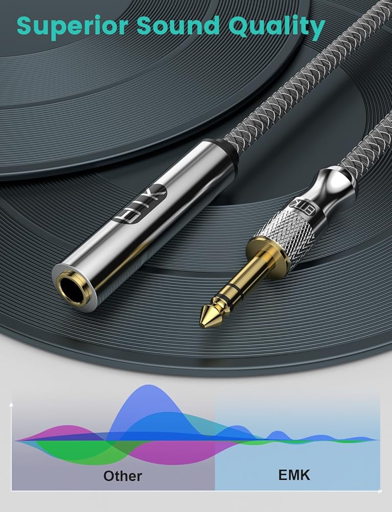EMK 1/4 inch Extension Cable, 6.35mm 1/4" inch Male to Female Stereo Headphone Guitar Extension Cable Cord, Gold Plated Quarter inch Headphone Extension Cable (3.3FT/1M)