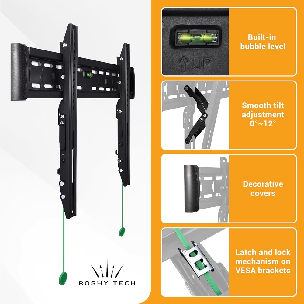Transform Your Living Room Into a Modern Entertainment Haven Upgrade your space with our PREMIUM TV WALL BRACKET, expertly crafted from durable cold-rolled steel to provide unmatched strength and stability. Its sleek design, enhanced with subtle plastic accents, effortlessly combines functionality with style, adding a sophisticated touch to your home decor. Perfect Viewing, Every Time Say goodbye to glare and awkward angles with the bracket's 12-degree tilt adjustment, ensuring the ideal position for movie nights, gaming sessions, or everyday TV watching. Hassle-Free Installation Enjoy an easy setup with this user-friendly wall mount, complete with all necessary tools and instructions conveniently included in the box. Designed for Safety and Peace of Mind Equipped with a secure locking mechanism, this bracket keeps your TV firmly in place, offering added protection against sudden shifts or accidents—perfect for households with kids or pets. Built to Last with Confidence Backed by an impressive 5-year warranty, this wall mount delivers long-lasting performance, making it a dependable choice for years to come. Elevate your TV setup today and experience the perfect blend of durability, elegance, and functionality!