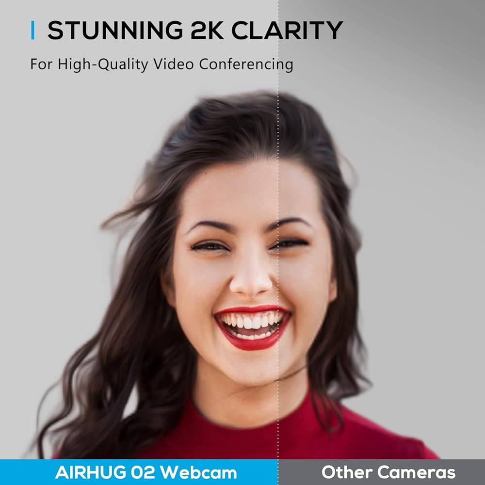 • USB Plug & Play, Super Easy to Set Up - Quick & easy to set up 2K/HD 1080p webcam on the desktop computer or notebook. No need for any drivers or software installation. Webcam AIRHUG 02 supports USB port 2.0 & 3.0. It is also compatble with Windows 7, 8, 10, 11 or Mac OS. It is perfect for Zoom meetings, Skype, MSN, Yahoo, Facetime, Youtube and supports a wide variety of video conferencing, recording and live streaming.
