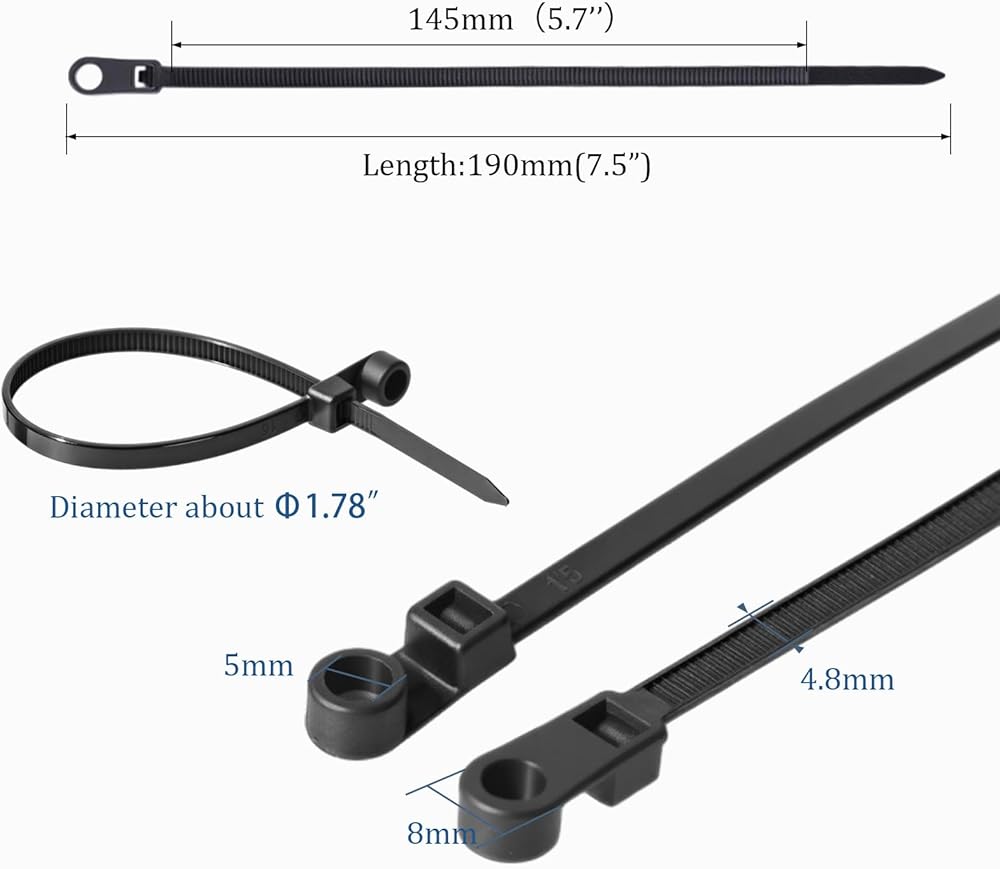Quality Material: zip ties with screw hole can secure thick or thin extension wires, either cables, appliance cords, plant branches, fences and packages; Stuff for cord management, it is popular with vintner, decorator, designer, engineer, fathers
