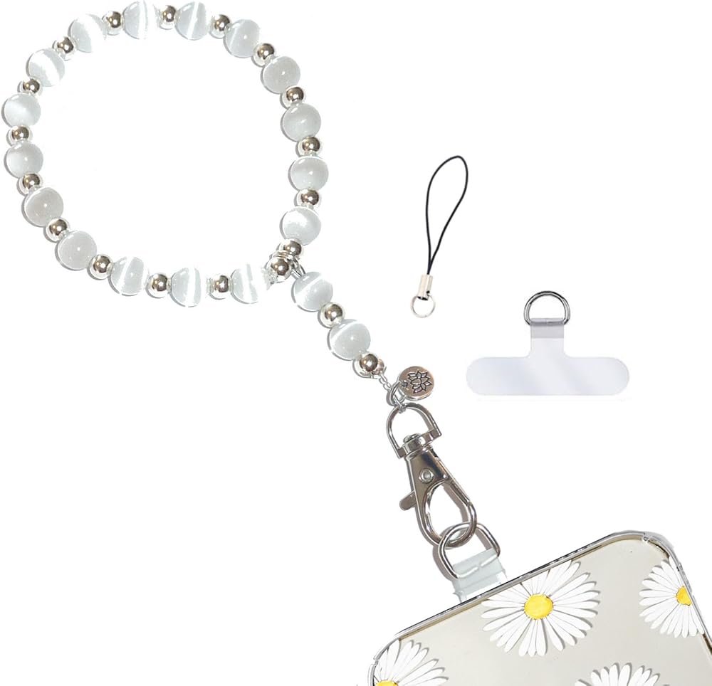 We use 1.2mm stretch cord that is super strong and 19 strand wire with a 58 pound break point so this wrist phone lanyard can hold up to what ever your life brings you. Add safety, style, and convenience to your phone with the Cell Phone Charm Wrist Strap, proudly made in the USA. This premium anti-drop wristlet is designed for women who value both fashion and functionality. Its universal compatibility ensures it works effortlessly with most smartphone cases, including those for Apple, Samsung, and Google devices. Whether you're running errands, attending events, or enjoying outdoor activities, this lightweight and durable tether tab wrist strap keeps your phone secure and within easy reach. Designed with busy lifestyles in mind, this accessory is a must-have for anyone who wants to protect their phone while staying hands-free and fashionable. -- The Story behind this phone accessory - My Daughter was expecting and absent minded. She kept leaving her phone everywhere she went. She even left it on the shelf at the grocery store. She and her husband were telling me all about how many times she had left her phone. I thought of this wrist strap that I had seen and made her up one that fit her personality. She loved it and has not lost or dropped her phone since. She loves it. I decided to make a bunch of designs. They are strong and slender so they can be used all the time and you dont have to take it off to fit it in your purse or pocket.
