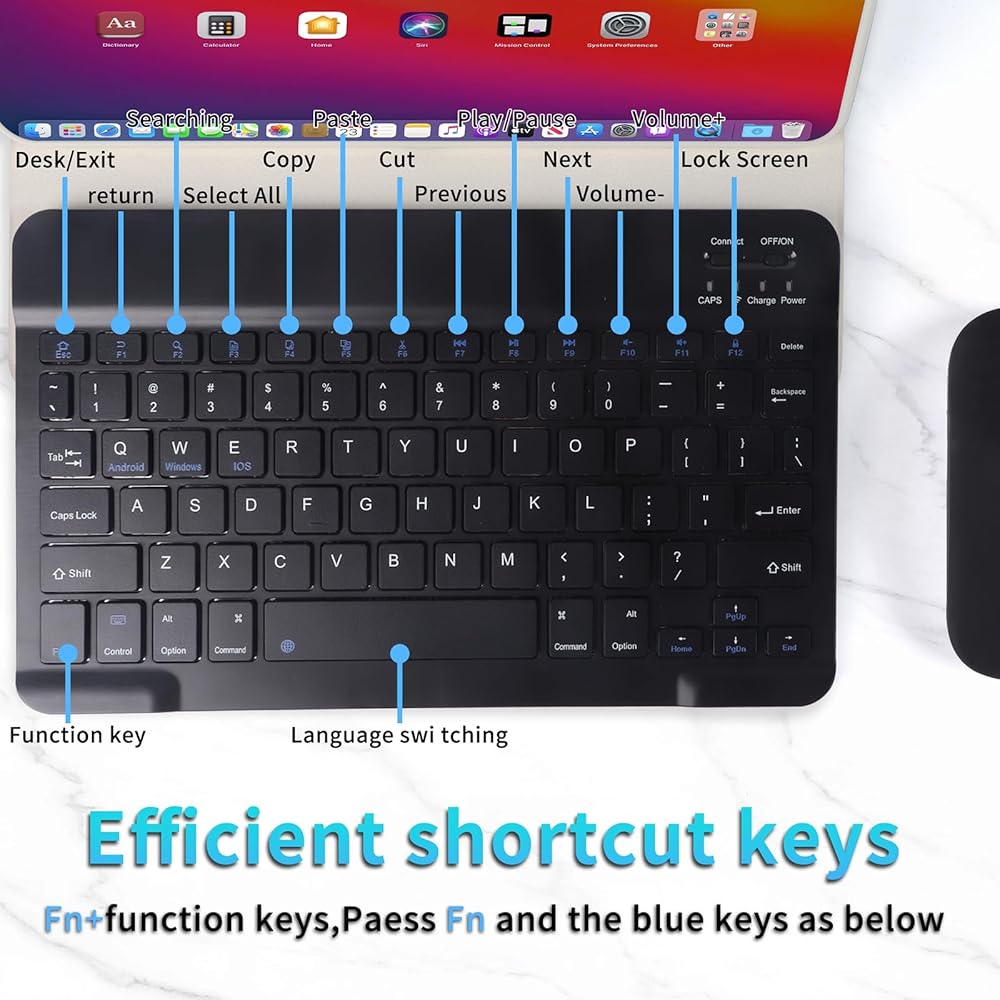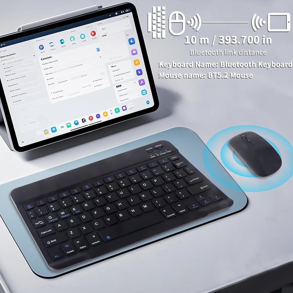 Bluetooth Keyboard, Wireless Keyboard and Mouse 2.4 USB Rechargeable Lightweight 10IN Universal Quiet Portable Mini Keyboard and Mouse Set for iPad,iOS,Mac,Windows,Android Tablet Laptop Phone,Black