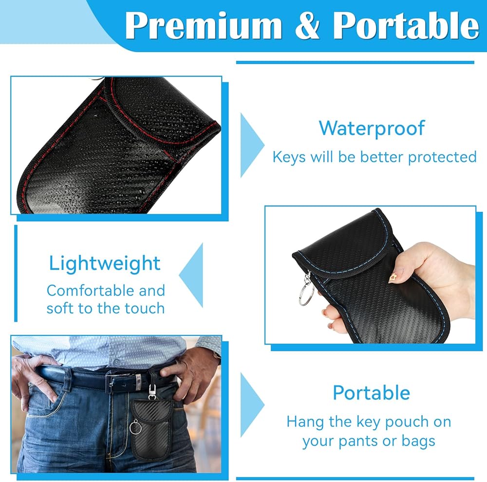 RFID Signal Blocking Pouch: These protectors block all wireless signals, preventing hackers from accessing your vehicle, with an easy-to-use, hassle-free solution