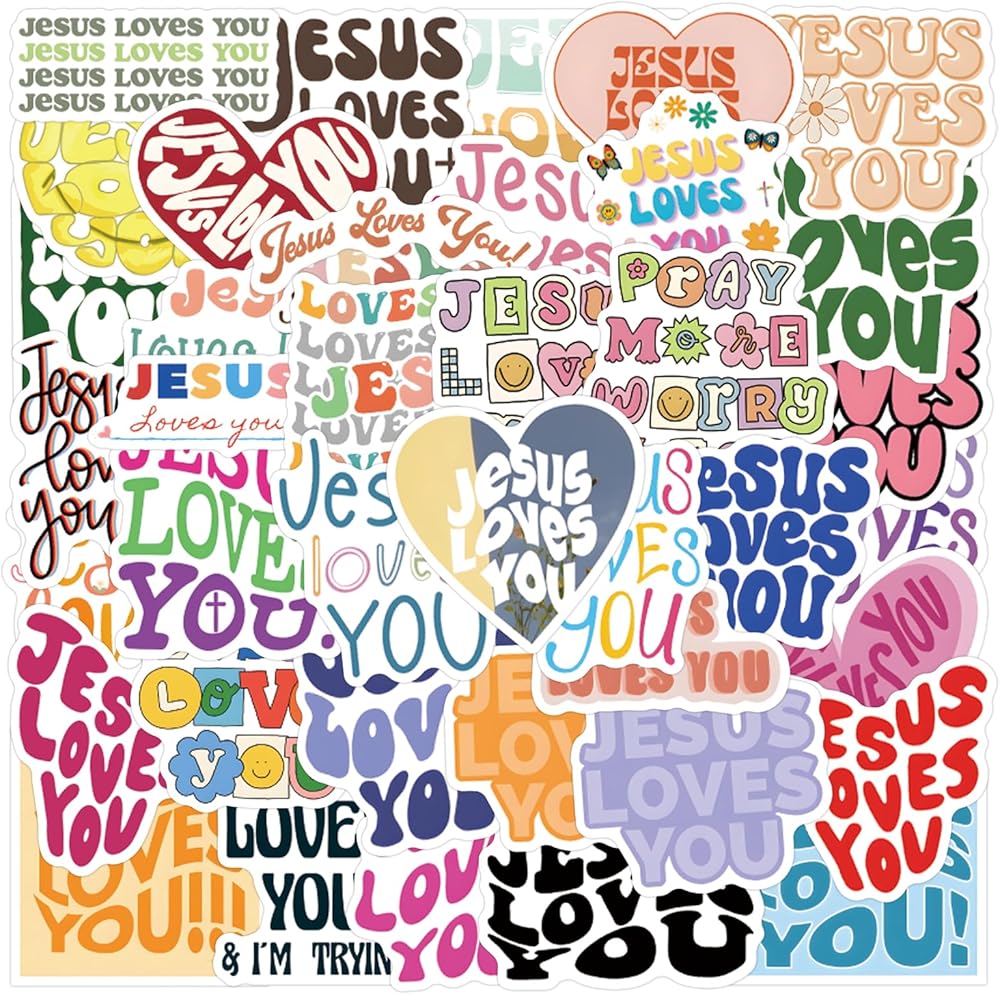 54PCS Jesus Loves You Stickers Inspirational Christian Stickers for Adults Teens Religious Sticker for Water Bottle Laptop Cards Party Supply Sunday Church Christian Easter Gifts