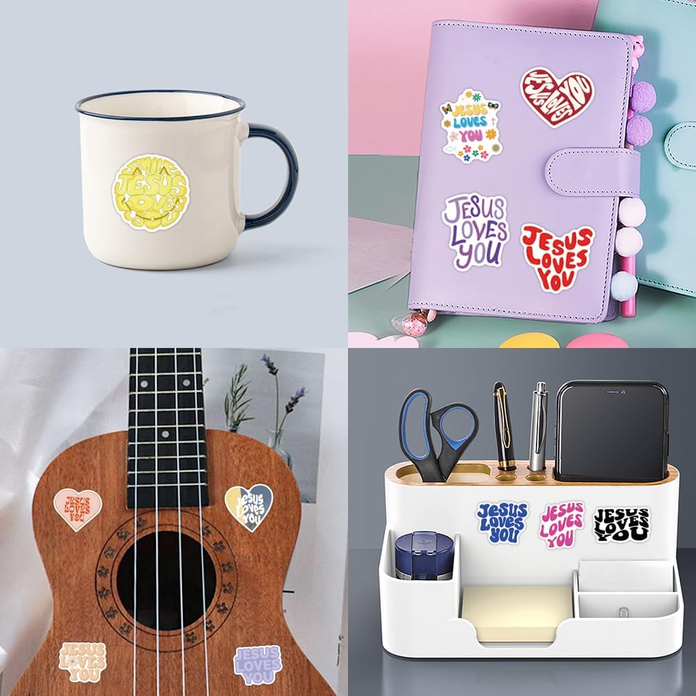 【High - Quality Material】These jesus love you stickers are waterproof,sun-protection,anti-wrinkling,made with high quality vinyl and inks, and can be pasted multiple times and no residue after removal.
