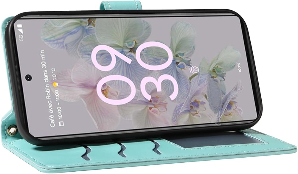Asuwish Phone Case for Google Pixel 6A 5G 2022 Wallet Cover with Tempered Glass Screen Protector and Wrist Strap Lanyard Card Holder Slot Stand Cell Accessories Purse Pixel6A A6 G5 Women Men Green
