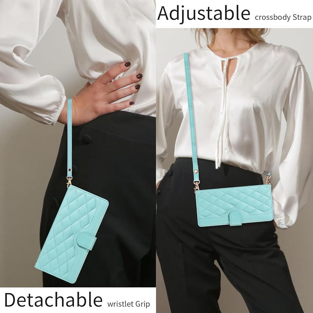【Screen Protector & Wrist Strap】: We will send the phone case with 1 piece tempered glass screen protector + 1 piece detachable wrist strap + 1 piece long crossbody lanyard .