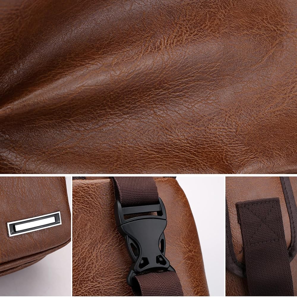 مادة متينة مقاومة للماء: مصنوعة من جلد PU عالي الجودة مع خياطة مقوى وطلاء مقاوم للماء ، هذه الحقيبة تصمد أمام المطر والانسكابات. تضمن البطانة الداخلية المتنفس والسحابات المعدنية الملساء متانة طويلة الأمد