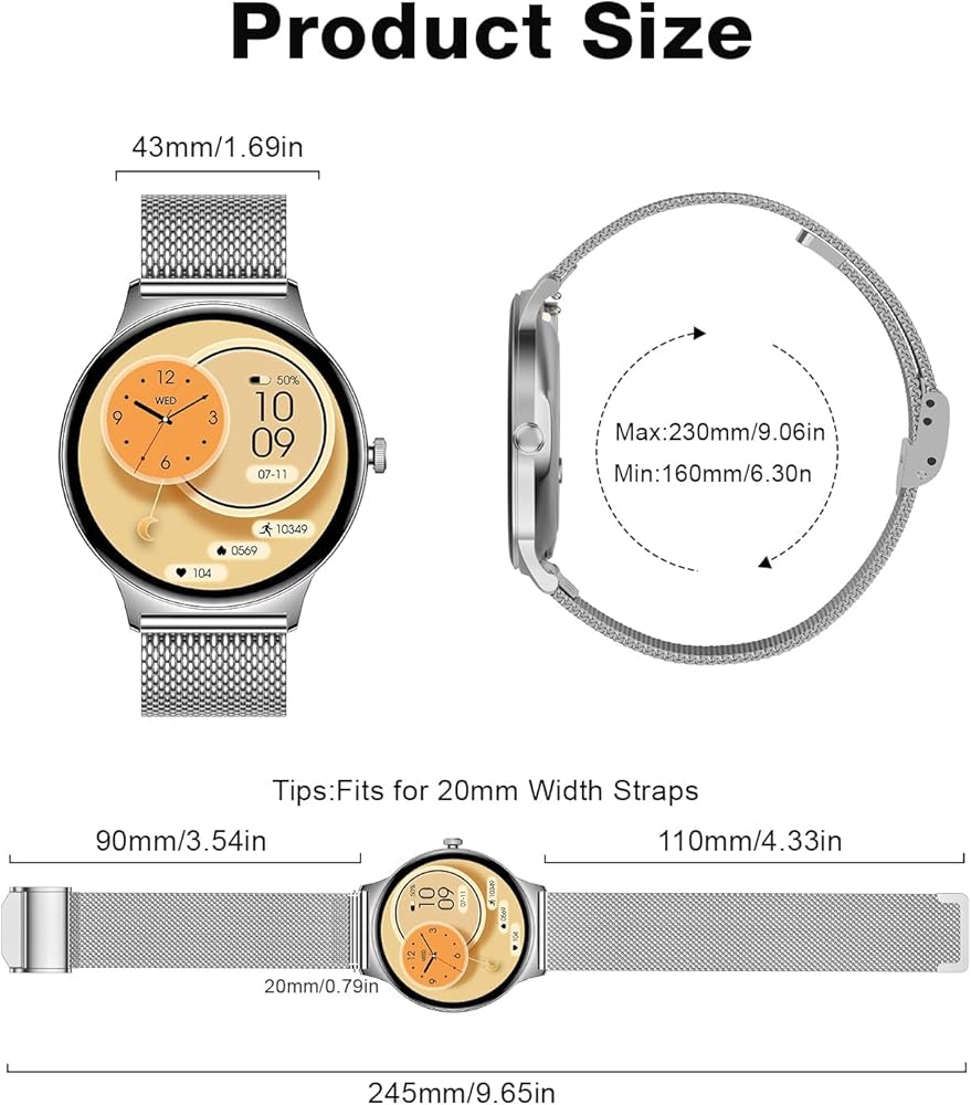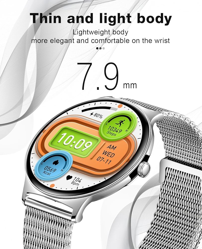 【Lightweight & Stylish Design】At just 7.9mm thick, this smartwatch is lightweight, comfortable, and beautifully designed. The breathable, premium strap enhances both comfort and style, making it perfect for everyday wear. Whether as a gift or for yourself, this smartwatch isn't just a functional device—it's a stylish accessory that complements any outfit, turning heads wherever you go. Wear it for both practicality and fashion!