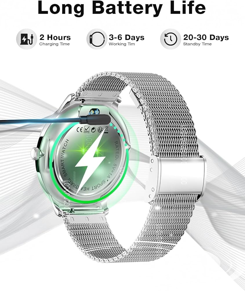【Long Battery Life & Multi-function】This smartwatch is powered by a 200mAh battery that lasts 3-6 days on a full charge, with a standby time of 20-30 days. It charges fully in just 2 hours. Packed with practical features like world clock, weather forecast, alarm, games, phone finder, flashlight, breathing exercises, music control, and camera control, it makes your daily life simpler and more convenient. Stay connected and enjoy more with this all-in-one smartwatch!