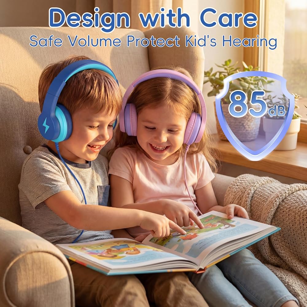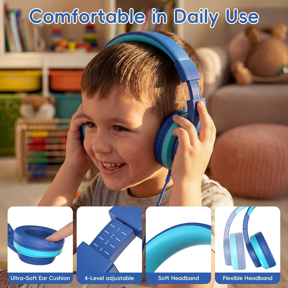 【Friendly Hearing Protection】Our headphones for kids have safe volume limit, 40MM audio driver, ensure clear sound quality three-dimensional. Effectively reduce high volume, protect children's hearing. The kids headphones for school,learning, listening to music, watching movies, playing games, traveling, chatting and entertainment ideal choice.