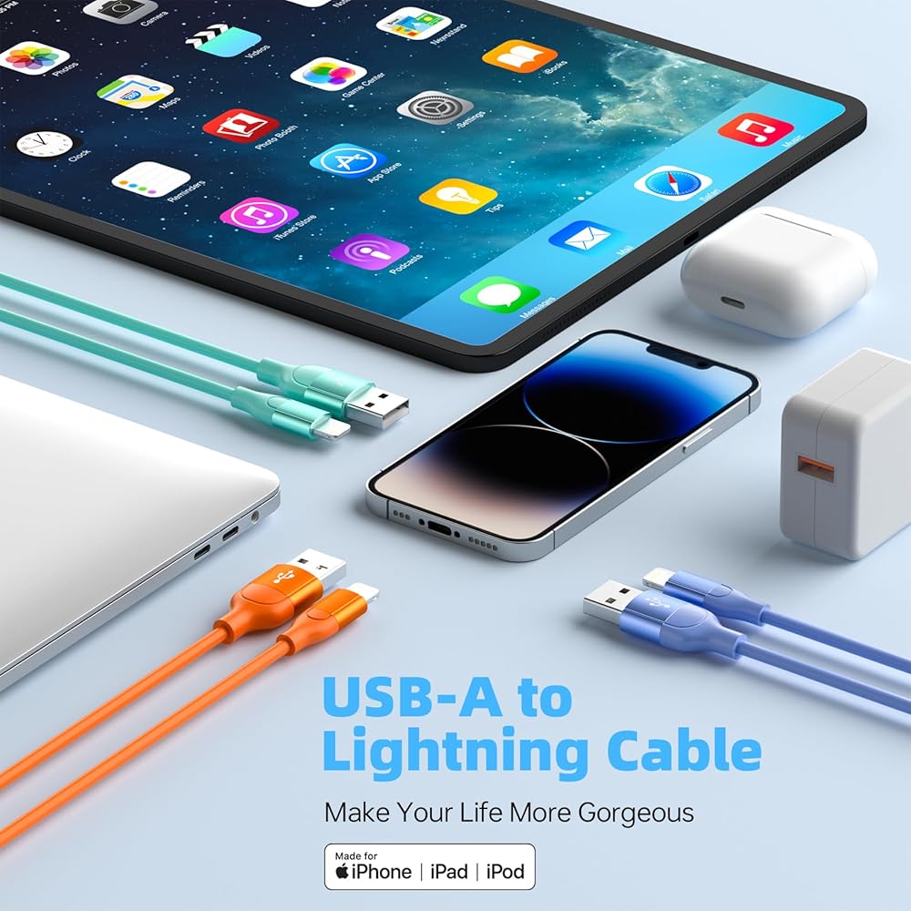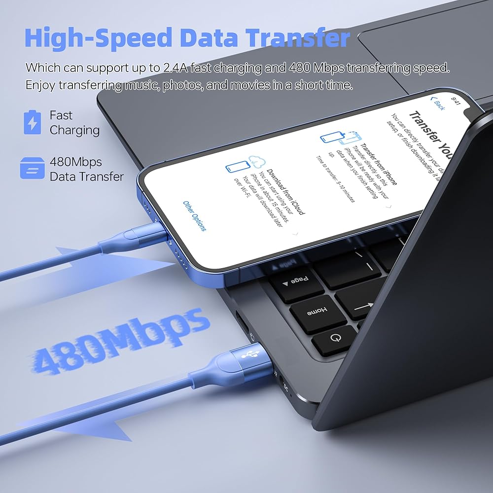 • High Speed & High Quality: 10 FT USB A - lightning cable provides high-speed charging and data transfer, thanks to the four-core, this cable charges faster and more reliably than ordinary charging cables