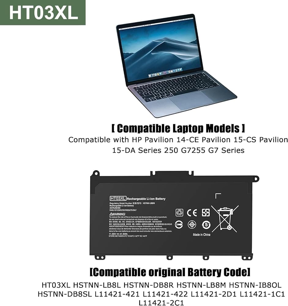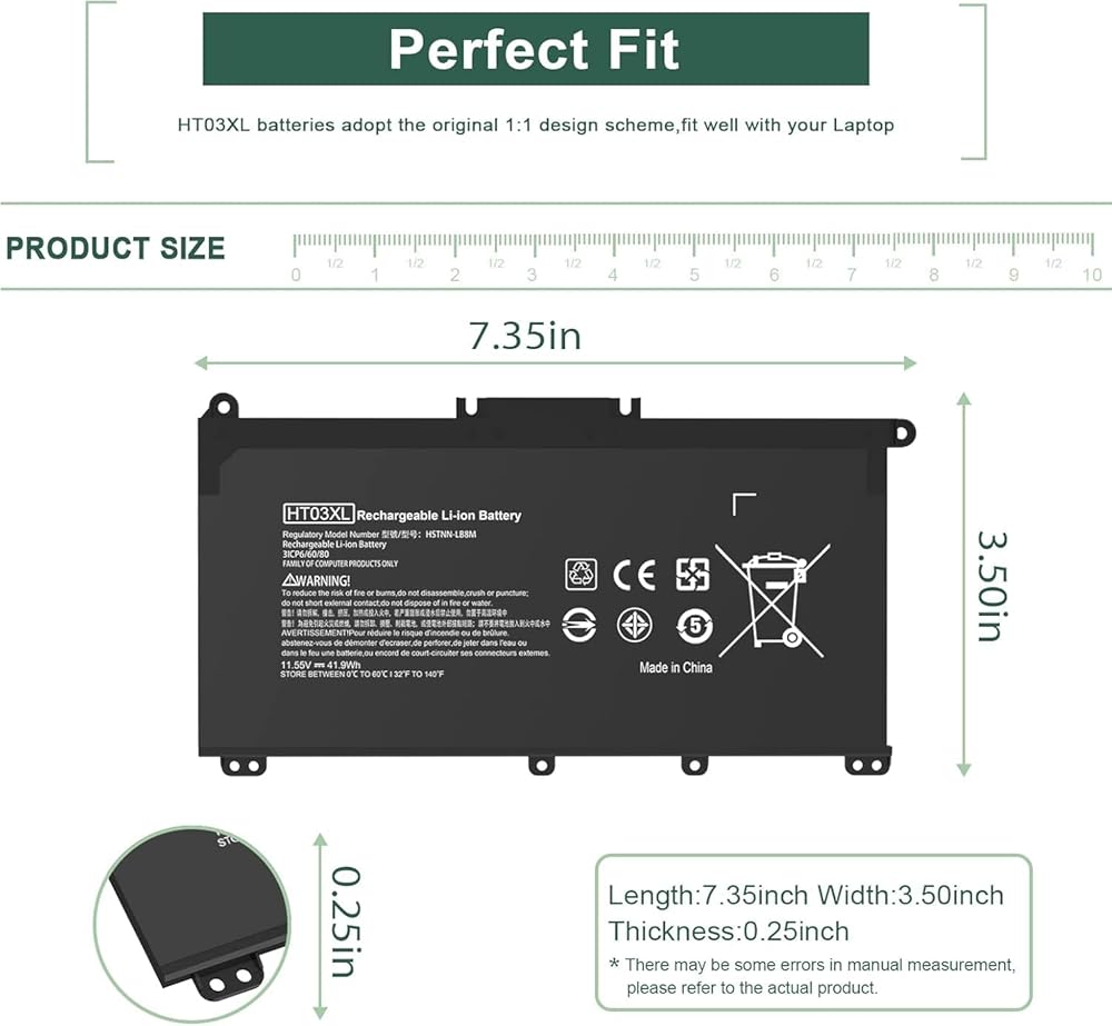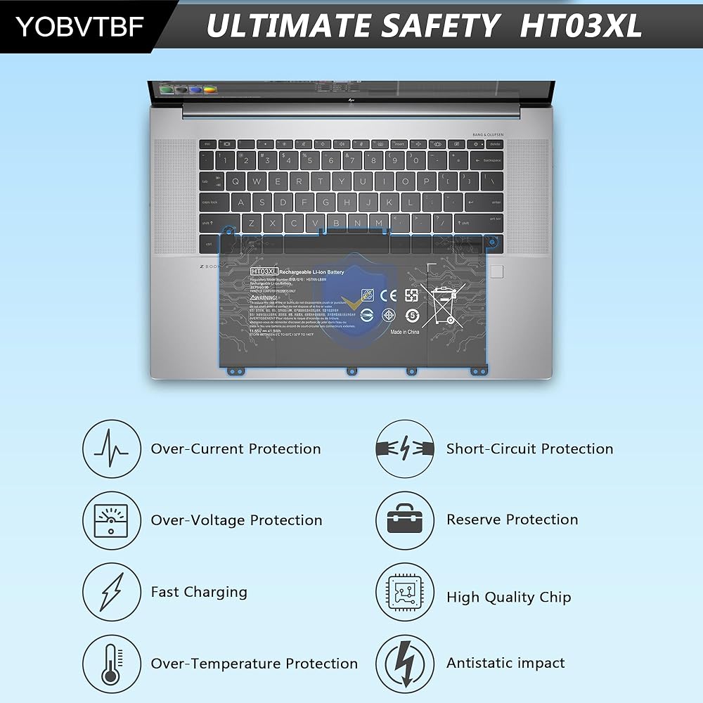 【Safety Features】The HT03XL battery is engineered with built-in Overcharge, Overdischarge, Over-temperature, and Short-circuit Protection, guaranteeing security and reliability, and ensuring your laptop operates safely