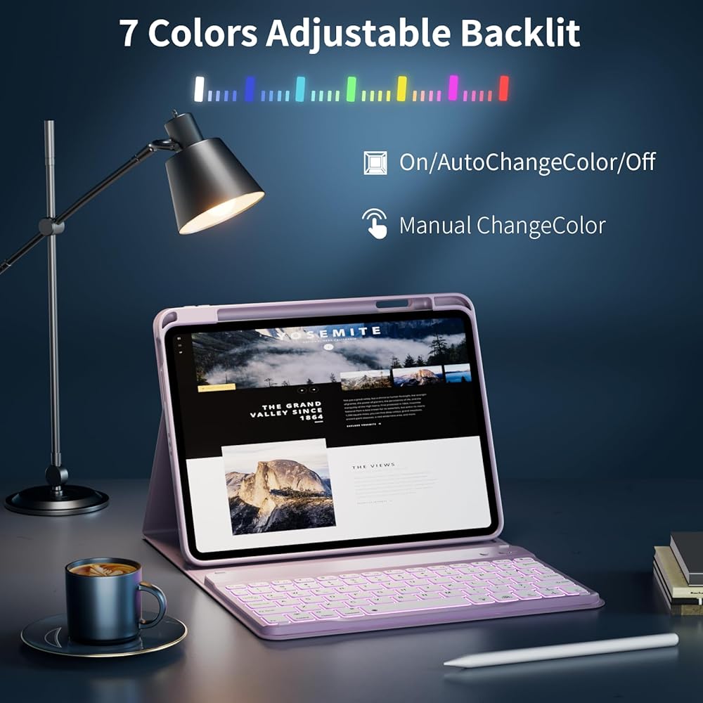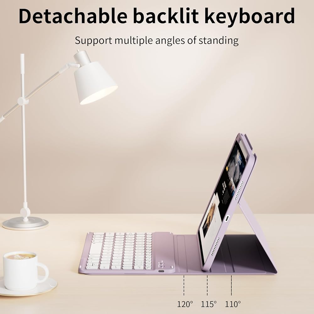kenke Keyboard Case for iPad Air 11 inch M4 2026/M3 2025/M2 2024 & iPad Air 5th 4th Gen (2022/2020) 10.9 inch with Pencil Holder, 7 Colors Backlit-Detachable Folio Magnetic Keyboard Cover, Purple