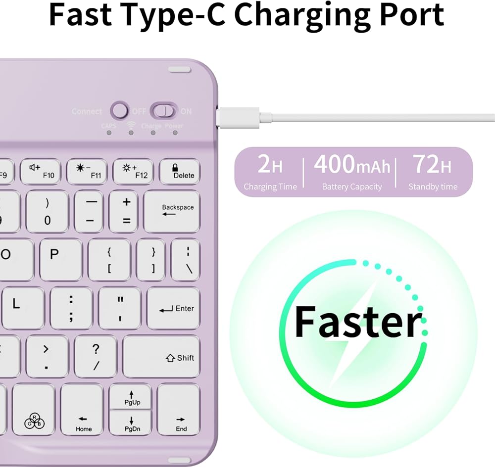 Rechargeable and Long Life Battery : For iPad Air 4th Generation case with keyboard built-in 420mAh large capacity battery, more energy saving and lower consumption, ensure you can use at least 230 hours. It can be fully charged in 2 hours with Type-C charging cable, don't need to replace battery