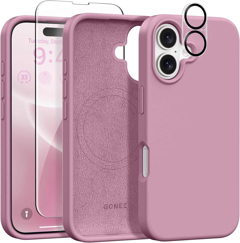 GONEZ Magnetic for iPhone 16 Case, Compatible with MagSafe, [Screen Protector + Camera Lens Protector], Silicone Shockproof Anti-Scratch Protective Phone Case 6.1 inch, Blackcurrant