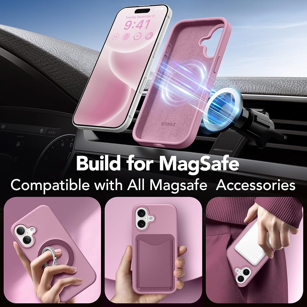 Compatible with MagSafe: The GONEZ for iPhone 16 case built-in powerful N55 magnetic ring, a strong connection that is not easy to fall. It is compatible with most MagSafe accessories, including magnetic chargers, wallets, stands, car mounts and more