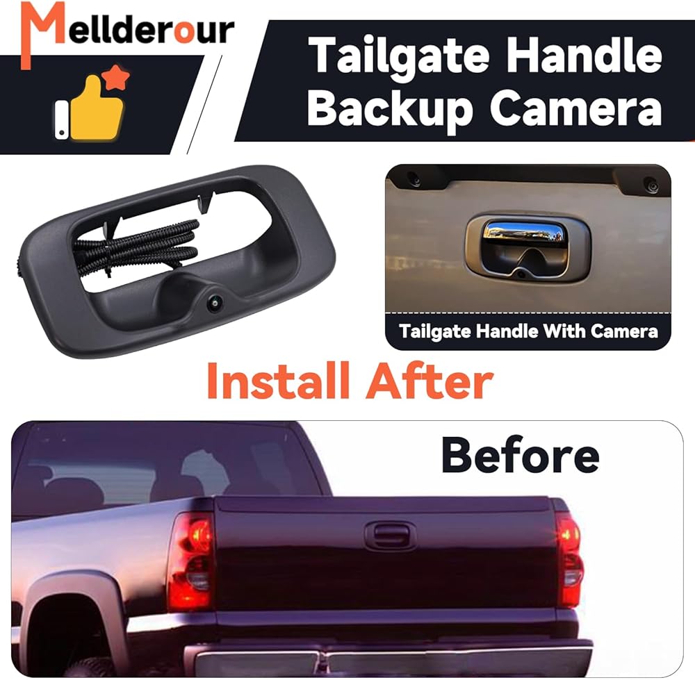 Tailgate Handle Backup Camera Compatible with Chevy Silverado GMC Sierra 1500 2500 3500 HD Classic 1999-2007 Tailgate Reversing Rear View Back Up Camera RCA Plug.Replace#15228539, GM1915105, GM1916102