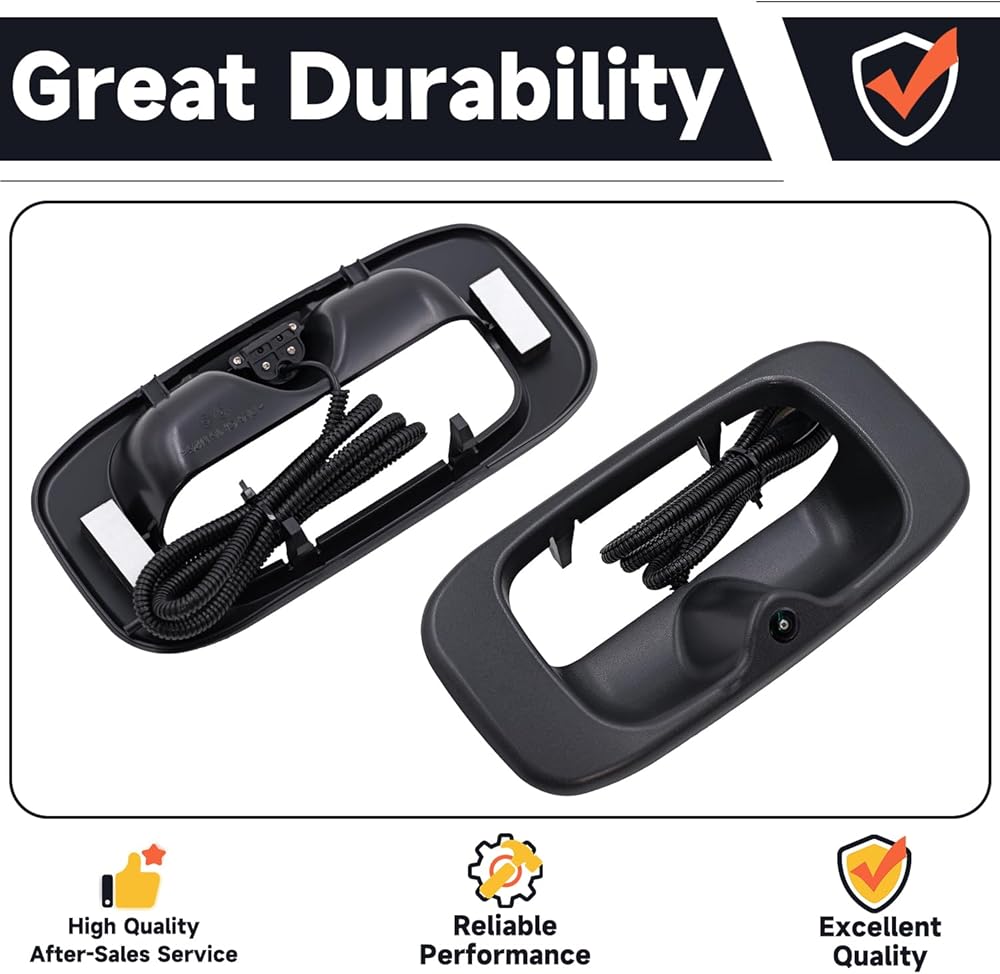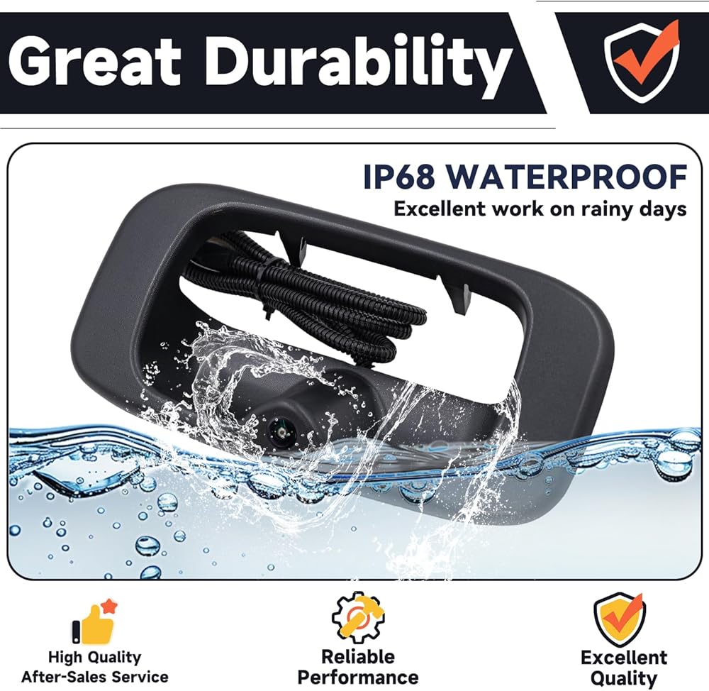 【Function】: Our back up camera camera is equipped with an upgraded camera and a far-infrared wide-angle camera device, with IP68 waterproof and providing you with a wider and clearer view even at night. The tailgate handle is made of reinforced ABS plastic, which is sturdy and durable. So it can work normally in extreme weather conditions.