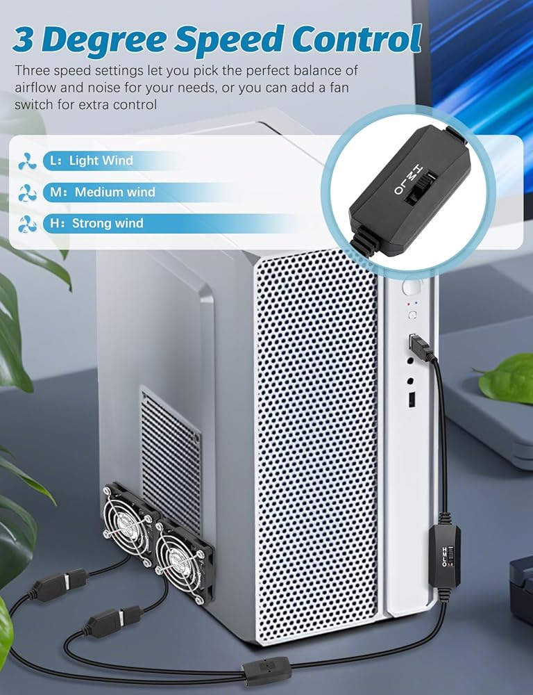This versatile 40mm USB fan is a USB computer fan and USB mini fan, perfect for cooling laptops, WiFi towers, 3D printers, cable modems, Steam Decks, and more. It functions as a CPU cooler, Ender 3 fan, and PC case fan, ensuring your electronics stay cool. For hobbyists, it serves as a micro fan, mini computer fan, and mini cooling fan, ideal for small space cooling needs. It's also a mini USB fan, mini PC fan, and miniature fan, making it perfect for portable use. As a small computer fan and small USB fan, it fits neatly into tight spaces. It doubles as a Terrarium fan and Reptile fan, maintaining ideal environments for your pets. For cosplay enthusiasts, it functions as a Fursuit fan and Helmet fan, ensuring comfort. It's also a Welding helmet fan and Xbox Series S cooling fan, providing reliable cooling for various applications. Whether you need it for your computer, hobby projects, or personal comfort, this fan is a must-have