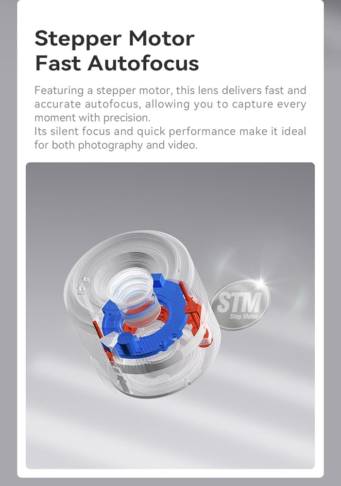 AF Function: The lens has a built-in STM + lead screw type stepping motor that supports intelligent recognition functions such as eye focus, animal and car focus, further enhancing the shooting experience.