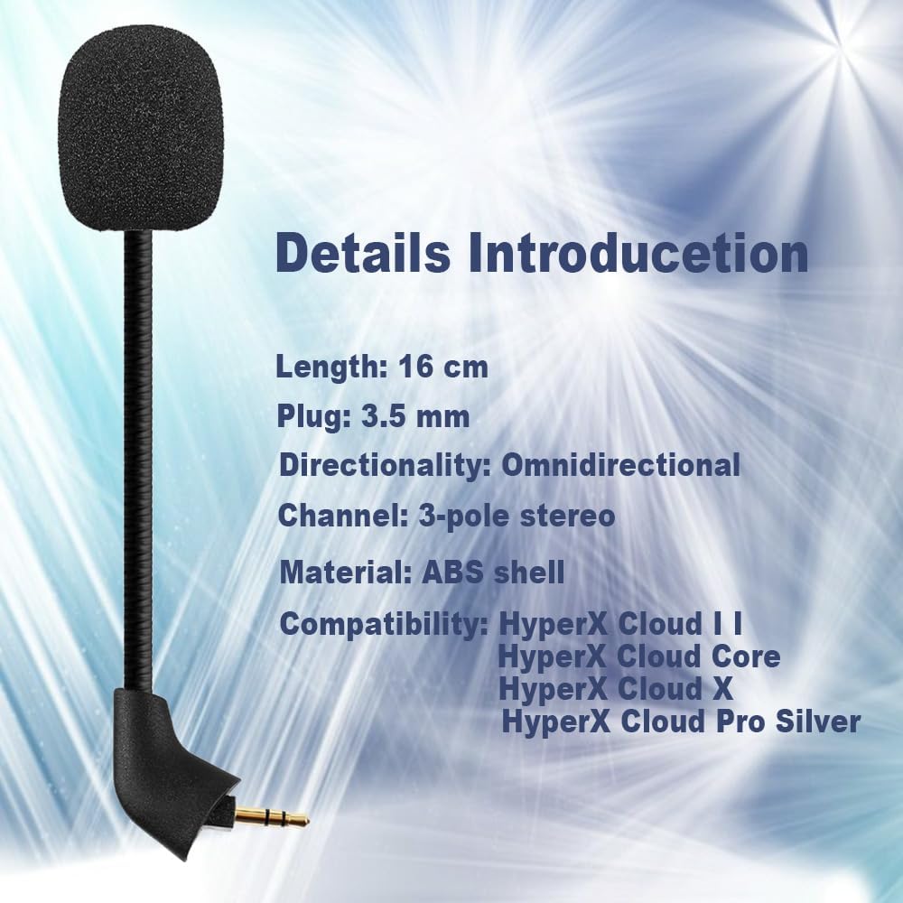 Clanmou Microphone Replacement for Kingston HyperX Cloud II Wireless Gaming Headset, 3.5mm Jack Detachable Mic Boom on PC PS5 PS4 Xbox Series X/S