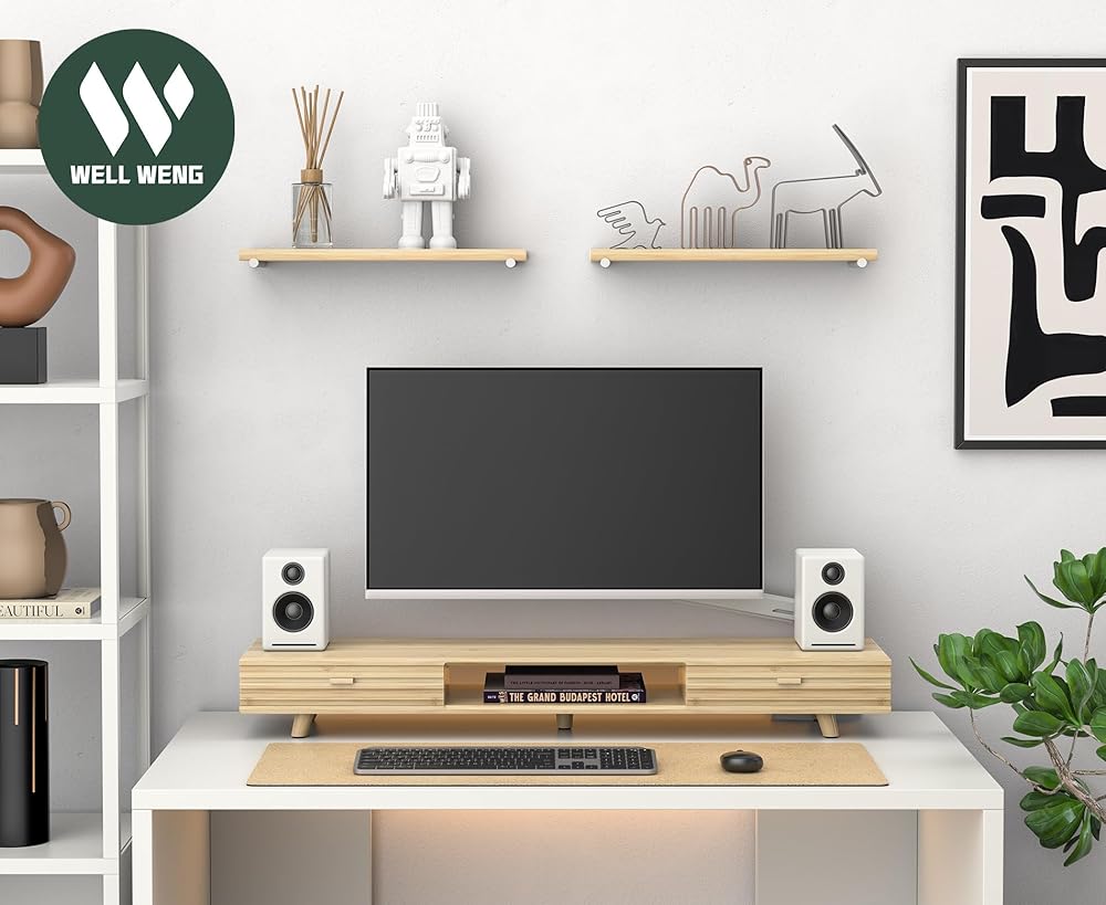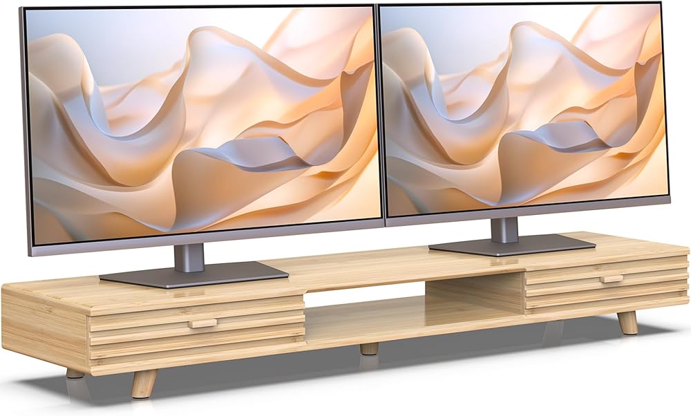 【Solid Bamboo & Eco-Friendly】Chemical-free compressed bamboo withstands 220lbs. Natural moisture-resistant texture, ideal for 32-inch monitors. 5X more durable than MDF