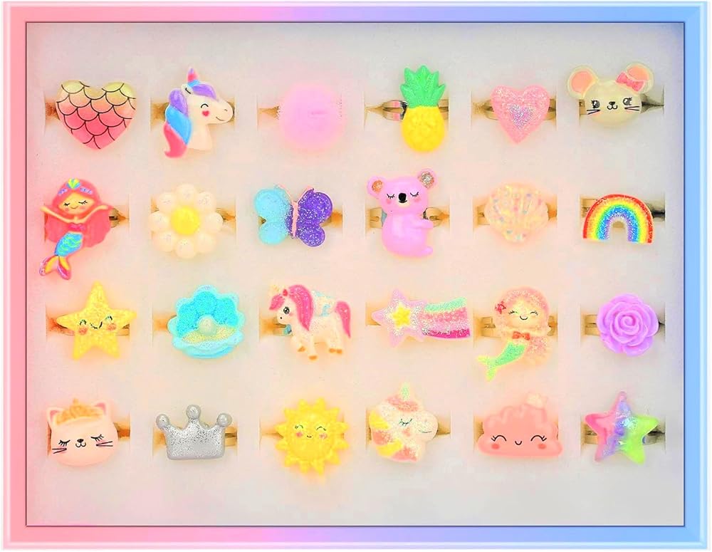1. UNIQUE DESIGN--Design of 24 pcs Jewelry rings set that will make your daughters mesmerized. Usage of vibrant colors and lovely designs, no duplication.