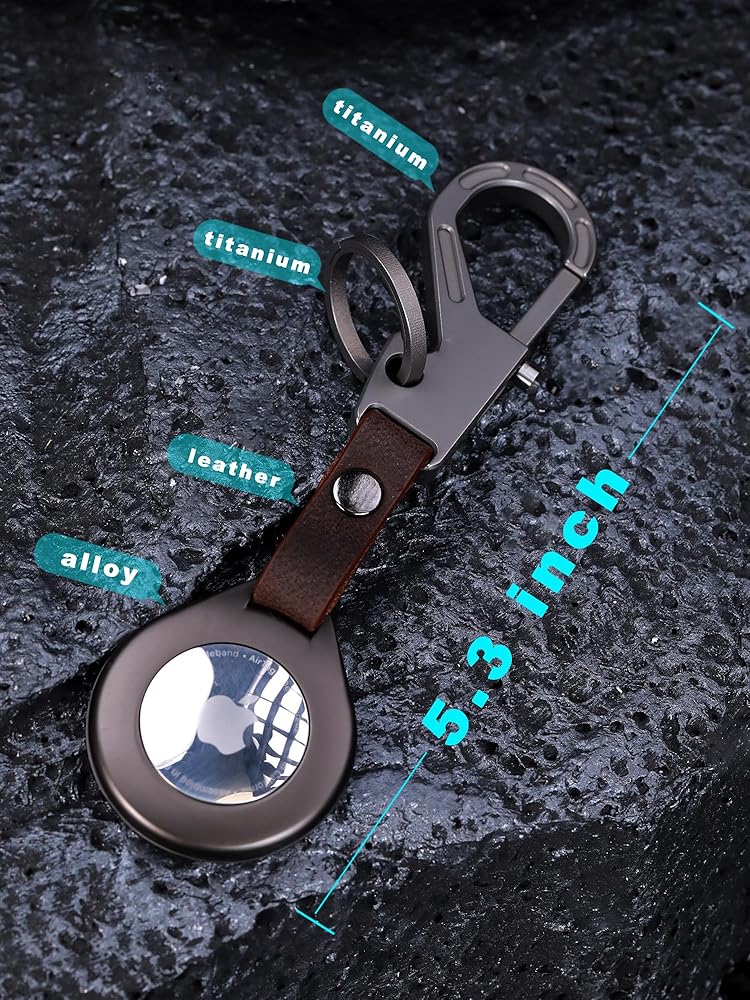 The titanium buckle is not only lightweight but also highly wear - resistant and sturdy. It has excellent elasticity, ensuring easy operation. The cowhide rope is extremely tough and secure. The protective shell is made of metal alloy, providing 360 - degree protection for the Airtag.