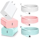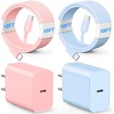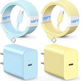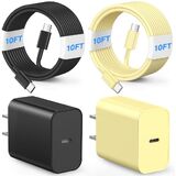 USB C Fast Charger, 2 Pack 20W USB C Wall Charger Block, 10FT 60W Long Charging Cable Cord, Phone Fast Charger for Phone 17/16/16Pro/16Pro Max/15/15 Plus/15 Pro/15 Pro Max-Blue and Yellow