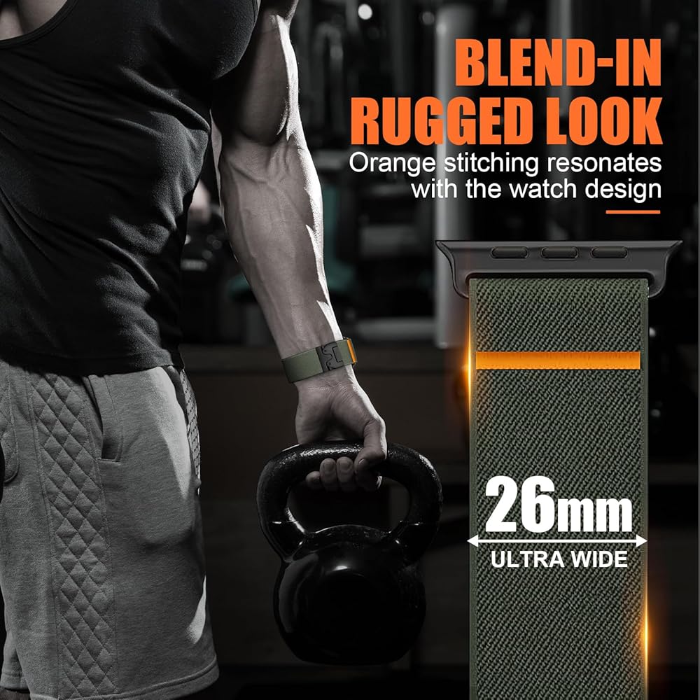 【Skin-friendly, and Stretch Nylon】 26mm wide nylon sport wirstband for Apple Watch band 44mm is made of high-quality Nylon material. It is skin-friendly, soft, lightweight, breathable, silky, durable and easy to clean. Its characteristics make it suitable for workout, as well as leisure, business, travel and many other occasions