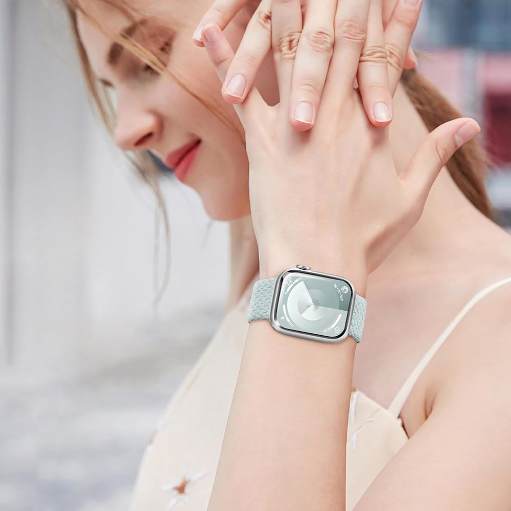 Elastic Solo Loop, No Buckle: Our iWatch bands are made of nylon material, ensures a snug fit around your wrist. Its flexibility allows it to adapt to various wrist sizes, eliminating concerns about fit. And the lightweight design ensures that you hardly notice its presence, allowing you to immerse yourself fully in work or activities while enjoying an easy-wearing sensation