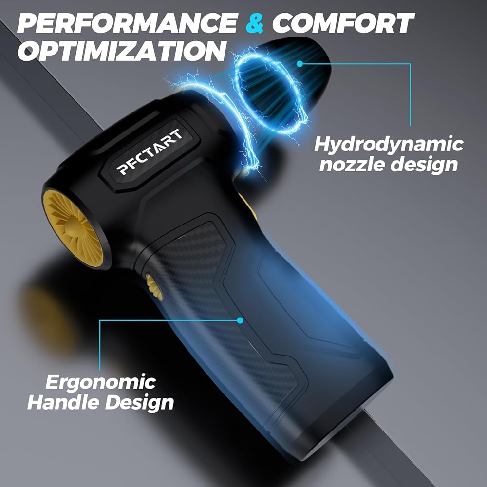 Upgraded Powerful Motor: PFCTART compressed air duster features a high-efficiency brushless motor that reaches speeds of up to 200,000 RPM, delivering 200 G of blowing force. It easily clears dirt and debris from keyboards and other electronics, making it perfect for home, office, or car cleaning