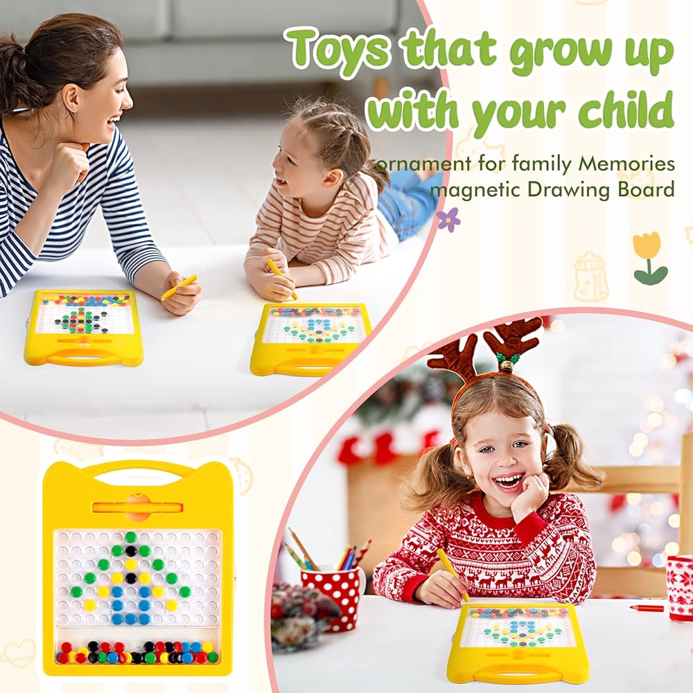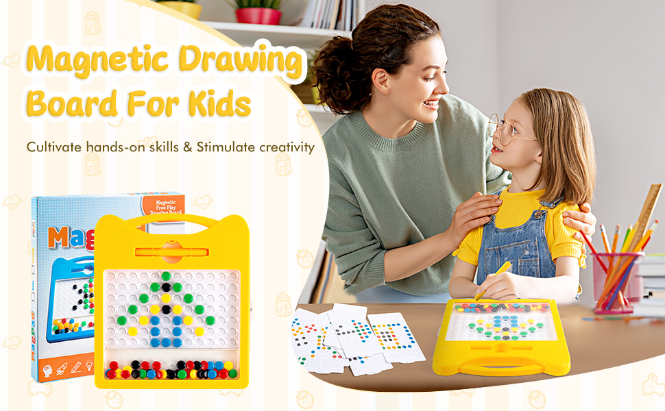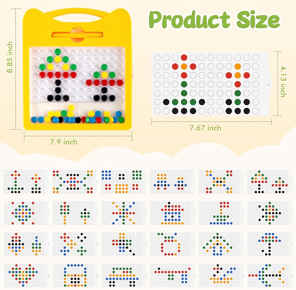 MONTESSORI PRESCHOOL TOYS - Our magnetic drawing board is great for learning colors, shapes, counting. Kids can use the pen to place the colorful magnet beads into the corresponding positions by following the patterns, which can improve kids' manipulation and stay focused. It helps with their hand and arm dexterity, learning colors, developing hand-eye coordination and motor skills.