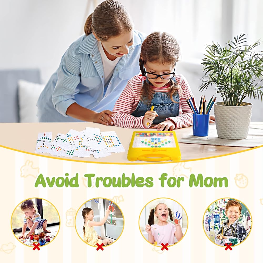 IDEAL GIFTS FOR KIDS - By moving these colorful magnetic beads around on the doodle board, kids will have fun spreading their imaginations and creating their own unique patterns. It can improve kid's concentration, patience and creativity. The magnetic dot art board is a ideal gift for toddler boy toys girl toys.Perfect easter gifs, birthday gifts Christmas gift or other rewards for age 3 4 5 6 7 year old.