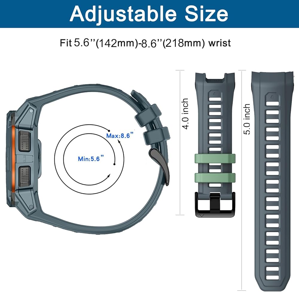 【Ingenious Design】The Instinct 3 sport band Using a stainless steel buckle design, easy to install and adjustable, holds your smartwatch band securely in place, no worry fall off. allows you to choose the most comfortable size from 5.1""-8.5" (130mm-216mm)