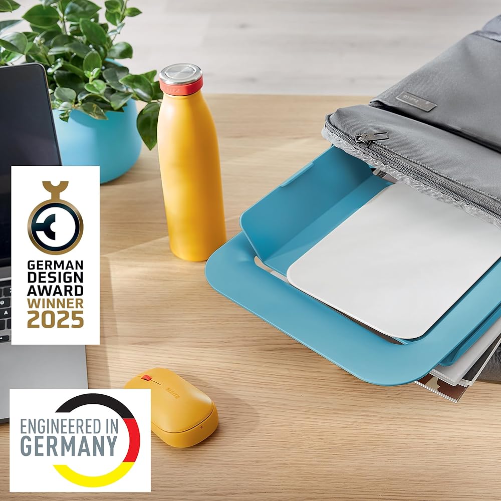The Leitz Ergo Cosy Laptop Riser stand raises the screen of your laptop to increase your viewing comfort whilst helping to improve your posture. Using a laptop support holder will also promote airflow, keeping the laptop battery and other components cool to maintain high levels of performance. The ergonomically designed adjustable laptop stand is designed to maximise the comfort at your workspace, whether it's in the office or at home. Adjust the height quickly and easily to keep your laptop screen in the perfect viewing position, and personalise it to you by choosing from 4 different heights. The stand features rubber elements and an integrated hook to provide a secure and stable fit to keep your laptop in place, and it's suitable for laptops from 13" to 17" in size. Its lightweight, compact footprint makes it an ideal laptop riser for desks of all sizes, and it folds for easy storage when not in use. It's perfect for working whilst sitting or standing, to further improve overall health and to support active working. With it's minimalist design and matte grey finish, this stylish laptop stand helps to improve health and well-being by effortlessly creating the perfect active working set-up. Available in a choice of colours.. The Leitz Ergo Cosy range combines style with premium quality to create a healthy and active work environment. Mix and match other Leitz Ergo products for an inviting and flexible workspace, which keeps you moving all day. • Ergonomic laptop stand for maximum comfort • Modern and minimalist design in matte grey finish • Height adjustable – choose from 4 different levels • Suitable for laptops from 13" to 17" • Keeps the battery and other components cool by promoting airflow • Folds for easy storage when not in use • This product should be used with an external keyboard and mouse (sold separately)