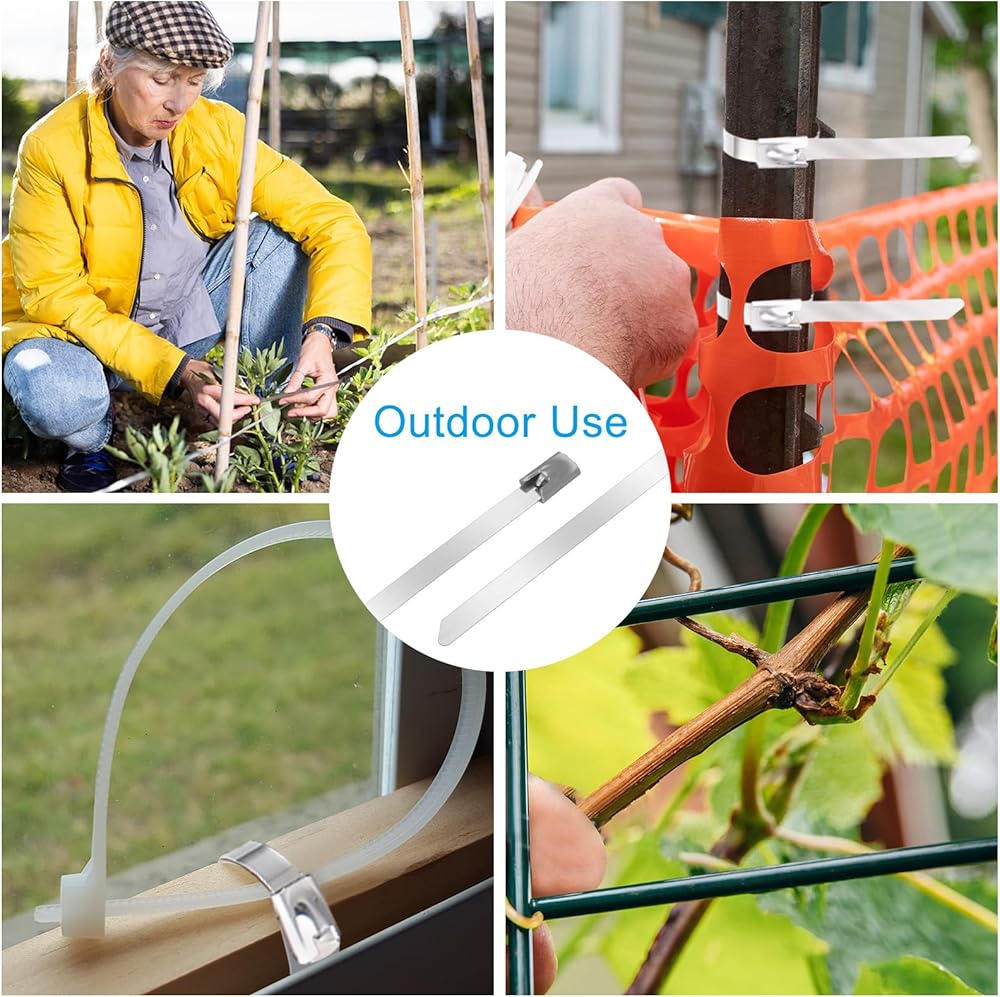 Stainless steel self-locking cable ties is widely used in machinery, vehicles, gardens, farms, cables, pipes, roofs, basements and outdoor binding, Perfect for use in harsh outdoor environments