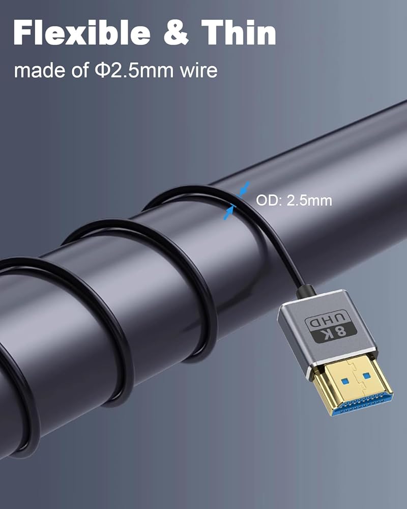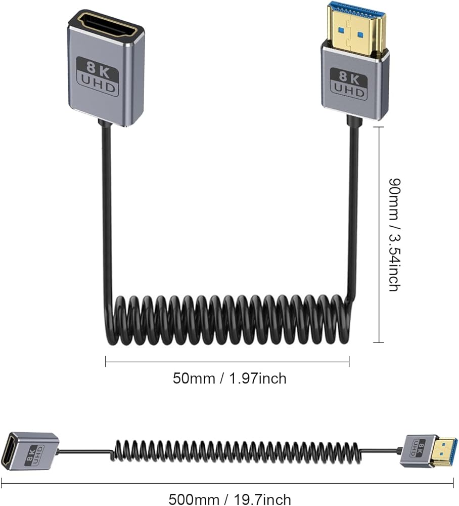 8K coaxial coiled HDMI cable, with a flexible extension range of 1 to 1.5 feet, is an ideal choice for connecting laptops, cameras and portable displays. It can effectively reduce cable tangling and help you create a neat and orderly workspace, especially suitable for professionals who often work on the move. According to actual needs, it can freely adjust the cable length, ingeniously avoiding the problems of ordinary cables being too long and dragging or too short and inconvenient.