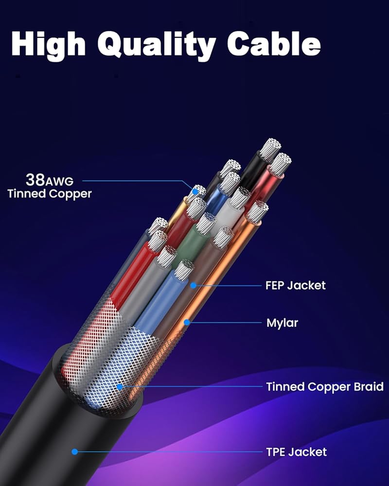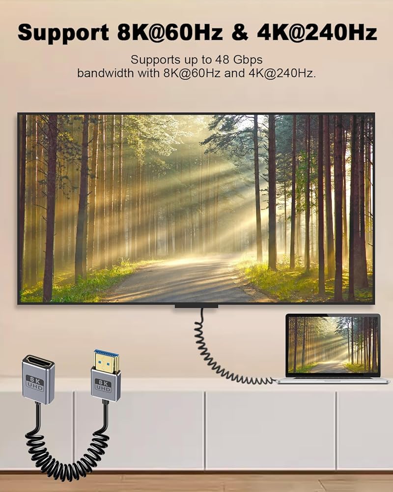 The 8K HDMI coiled cable features an ultra-high bandwidth of 48Gbps, achieving seamless connection through HDMI 2.1 and fully meeting your high-definition needs. Whether it's smooth streaming playback, amazing media enjoyment, or real-time live interaction, this outstanding performance will present you with an ultimate experience.
