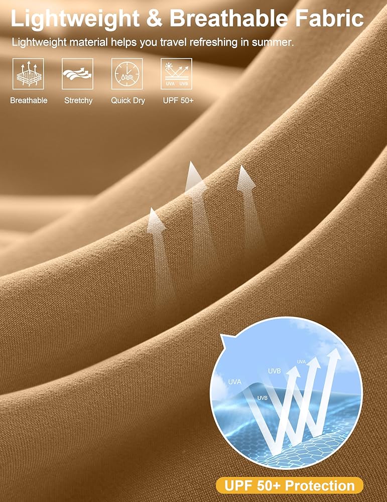 Water Resistant & UPF 50+: Crafted with UPF 50+ and water-resistant can prevents rain and stains from penetrating, keeping your body dry and fresh, also provides excellent UV protection when hot days