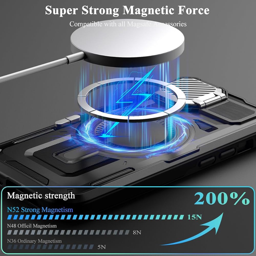 N52 Strong Magnetic Ring for Seamless MagSafe Accessories: Equipped with N52-grade magnets, ensuring secure attachment to MagSafe chargers, car mounts and wallets. Supports 15W fast wireless charging without removing the case.