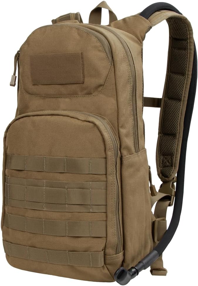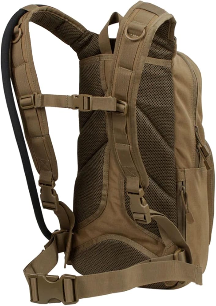 Main compartment with document sleeve Outer compartment with Hook & Loop panel, mesh pocket, and divider Quick access gadget pocket with fleece lining Two discreet small side pockets for keys, cards, or other small items Padded back mesh panel for maximum airflow Contoured shoulder straps with D-Ring and sternum straps Detachable waist strap Condor 3L Torrent Hydration Bladder included (221219)